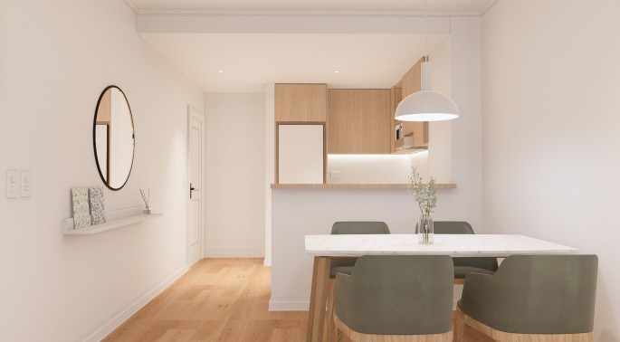 Proyecto Concordia 913, un emprendimiento de Simon V. Group. El desarrollo busca proponer una arquitectura de estilo francés conservando lo tradicional y lo moderno mediante elementos decorativos como también el uso de materiales innovadores. Asimismo, emplea colores neutros generando una estética balanceada con el espacio vecindario. El edificio está compuesto por 9 pisos, 2 unidades por piso de 2 y 3 ambientes con 51m2 a 65m2 a estrenar. Está ubicado en Villa Santa Rita una de las zonas más versátiles en su composición ya que conviven comercios y viviendas en armonía. Se vende departamento de: 3 ambientes de 65m2 con 2 dormitorio, 2 baños, balcón Las unidades cuentan con: - Calefacción por losa radiante. - Carpinterías de aluminio con DVH. - Pisos de PVC símil madera de primera calidad - Baños revestidos con porcelanato de primera calidad. - Loza sanitaria de primera marca - Cocina equipada con Horno y anafe a gas. - Muebles de cocina de melamina con cantos de PVC. - Griferías Fv de cierre hermético. - Puertas de acceso a unidades blindadas y cortafuego. - Instalación para aire acondicionado prevista. El Edificio cuenta con: - Espacio para guardar bicicletas. Entrega estimada para fines del 2025 AVISO LEGAL: Todas las medidas enunciadas son meramente orientativas, las medidas exactas serán las que se expresen en el respectivo título de propiedad de cada inmueble. Todas las fotos, imágenes y videos son meramente ilustrativos y no contractuales. Los precios enunciados son meramente orientativos y no contractuales. Matricula C.P.I 7808 Simon V Propiedades